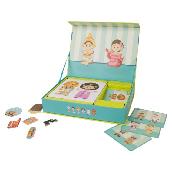 Układanka Ludzie z Całego Świata od renomowanej markiClassic World to idealny produkt dla naszych pociech, które zaczynają poznawać świat. Zestaw zawiera 60 elementów do ułożenia ludzi z różnych krajów na magnetycznej planszy. Układając postacie, możesz podążać za kartą lub stworzyć własną wersję ubioru. Ten zestaw daje dużo możliwości i świetną zabawę!