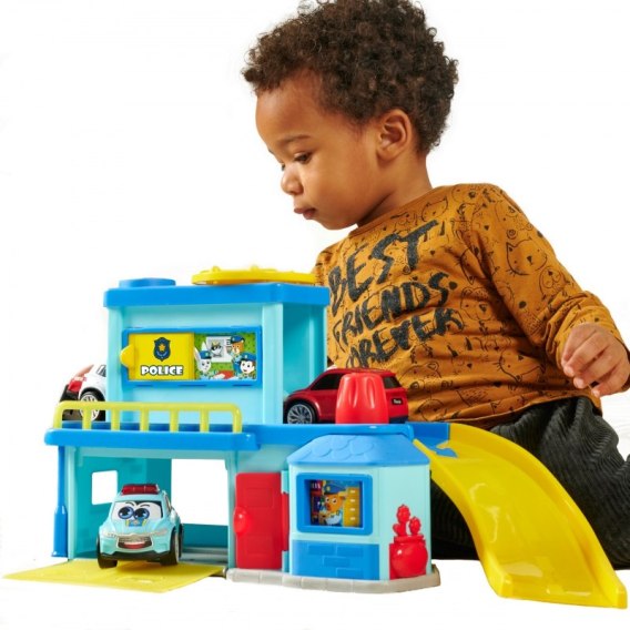 Dickie ABC Stacja Policyjna to zabawka dla najmłodszych. Dziecko może jeździć policyjnym radiowozem, wykonywać pościgi za samochodem lub łapać złodziei i zamykać ich w więzieniu.